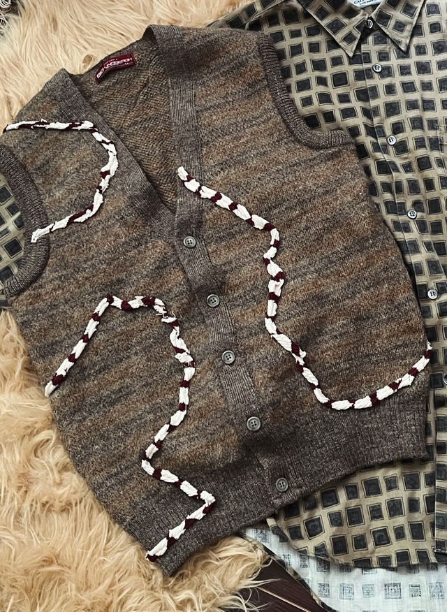 Size: 表記 LL 身幅 約44cm 肩幅 約39cm 着丈 約78cm Fabric: 表記なし Condition: 使用感あり Memo: 優しい風合いのベストに、リメイクで余ったハギレをうねうねと縫い付けました。 後ろ側も可愛いです。 Attention: ⚫︎1点もののため再入荷の予定はありません。 ⚫︎返品・交換は基本的に受け付けておりません。 ⚫︎古着特有の使用感、小さなほつれがある場合がございます。古着ということを理解頂いた上で購入をお願い致します。 ⚫︎商品のお写真は出来る限り実物のお色に近付けるようにしておりますが、実際の商品と多少色味が異なる場合が御座います。ご了承くださいませ。
